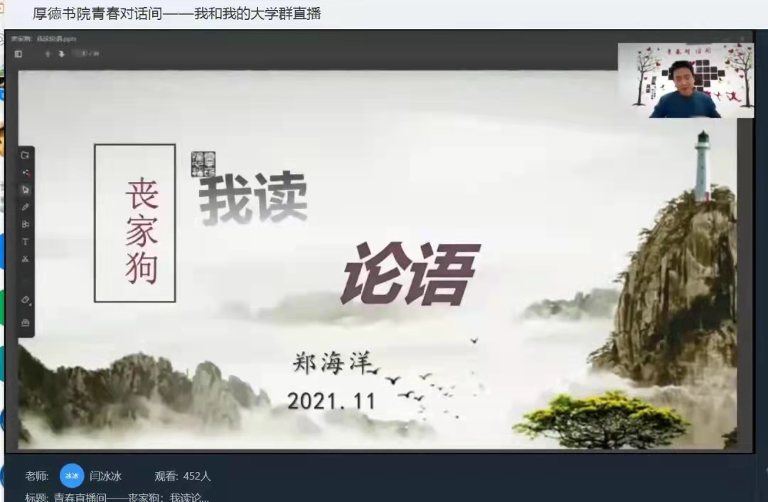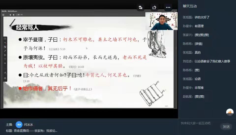此次直播,郑海洋老师为全院学生深刻解读了论语,让我院学生对论语有了更加深刻的学习,对儒家精神有了更清晰的理解。同时,为同学们培养正确的阅读习惯打下良好基础。