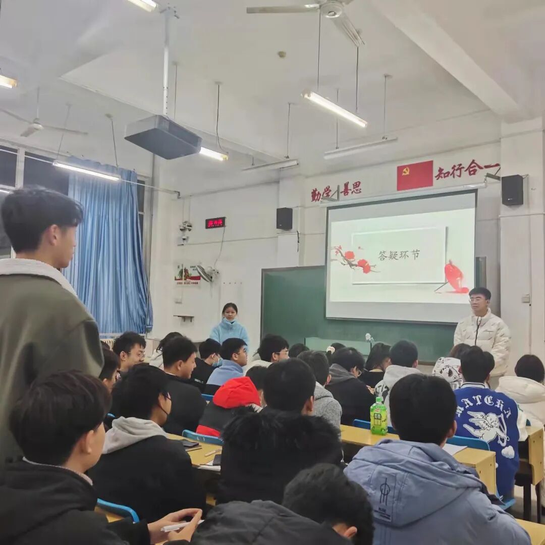 在交流会上,首先由赫智云学长围绕学风建设、学习心得、先锋模范作用三方面向大一新生交流个人学习经验,引导学生坚定理想信念,明确学习目标。其次张付腾学长以“竞赛”为主题,从“是什么”、“怎么做”、“做哪些”、“收获和意义”四方面,鼓励学生积极参加竞赛活动。通过有价值的竞赛活动积累经验、锻炼自我、提升自我。在最后的答疑环节中,学生们热情高涨,踊跃发言,向两位学长询问自己目前在学习中遇到的问题,学长们结合自己的学习经验为同学们提供有利建议,推动此次学风建设交流会圆满结束。