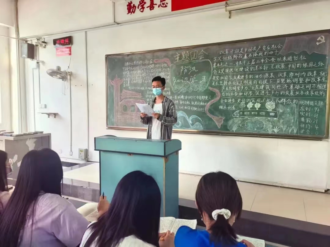团会活动中团支书讲解了“防汛、防雷、防水、山洪、暴雨、雷击、泥石流”等安全教育,用身边鲜活的生动的事例向学生们阐述了生命的可贵与重要。并对汛期应注意的安全事宜作了详细的安排,要求学生认真学习, 让每位学生都能了解汛期安全常识,提高自我防护意识和避险、自救、自护、互救能力。
