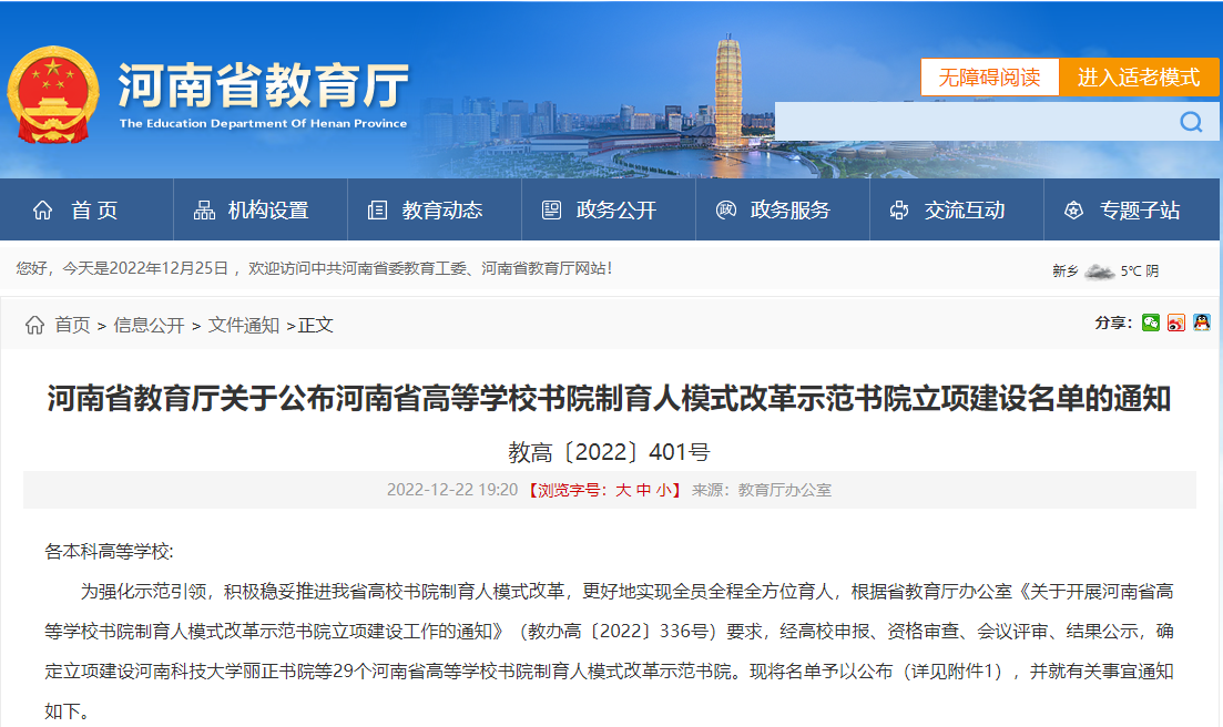 近日,河南省教育厅公布了《河南省高等学校书院制育人模式改革示范书院立项建设名单的通知》,我校厚德书院获批河南省高等学校书院制育人模式改革示范书院立项建设。