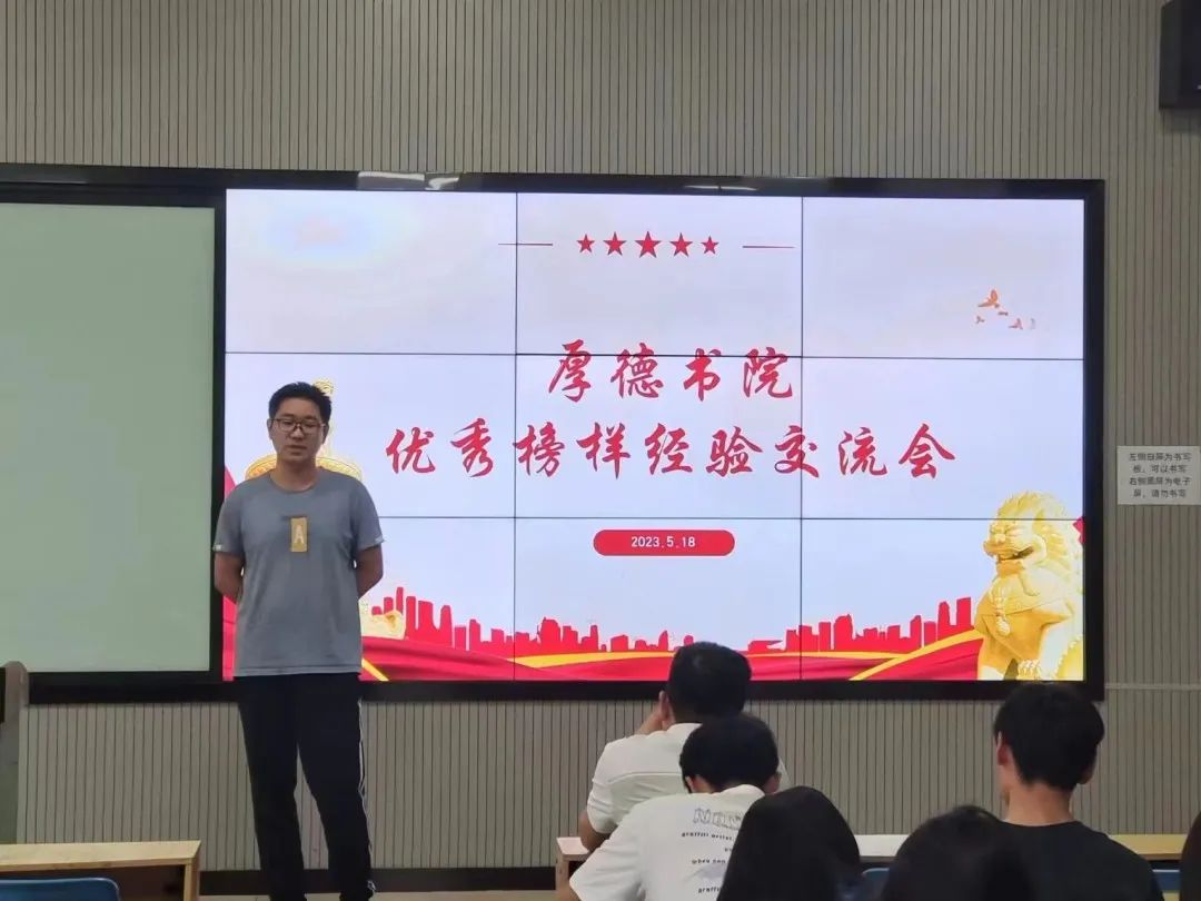 2023年5月18日下午三点,厚德书院于教学一号楼B105举办“优秀学生传经验 交流学习促成长”交流会。
