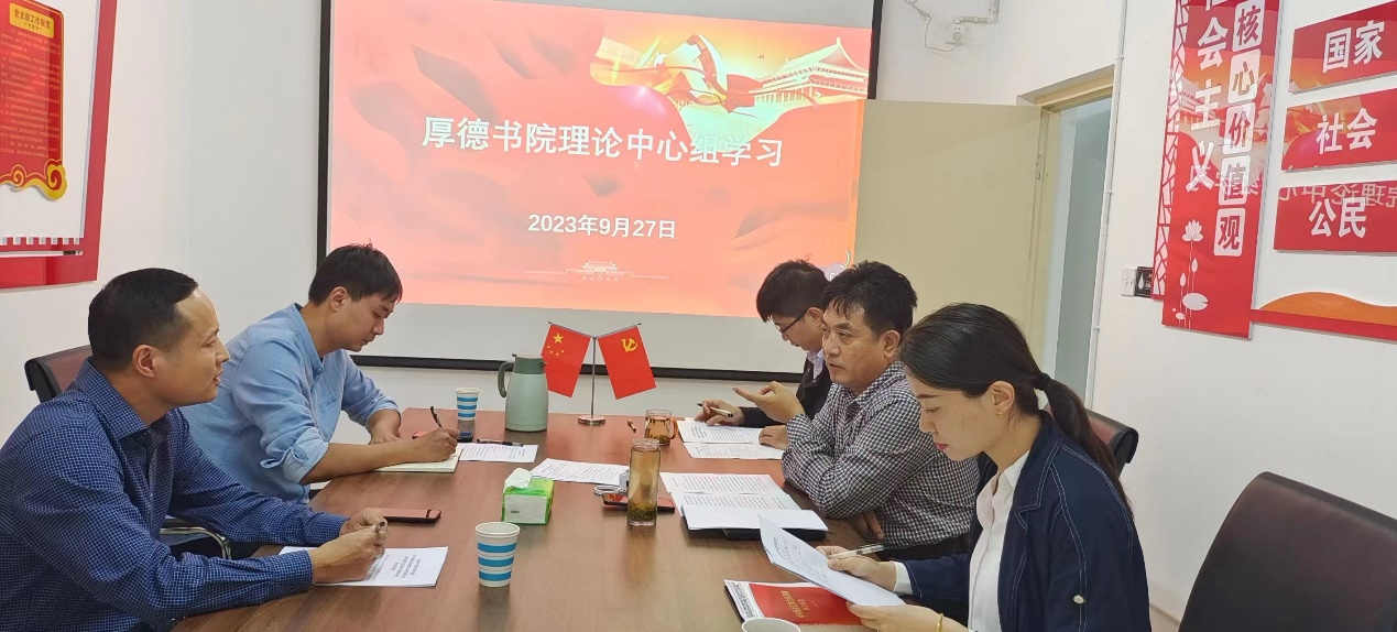 9月27日下午,厚德书院中心组在文九111室开展理论学习中心组学习,校党委学工部部长李士晓、学生管理科科长王智超列席旁听,厚德书院全体科级干部参加,会议由厚德书院党总支书记司尧华主持。