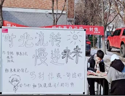 在快节奏的现代生活中,人们常常忙于应对日常琐事,而忽略了对未来的思考。为让广大学生能够发现自我、认识自我、坚定前进方向、走在臻于至美的道路上,厚德书院于2023年12月23日在文苑九号楼下举办“时光流转,慢递未来”——给未来的自己写封信的活动。