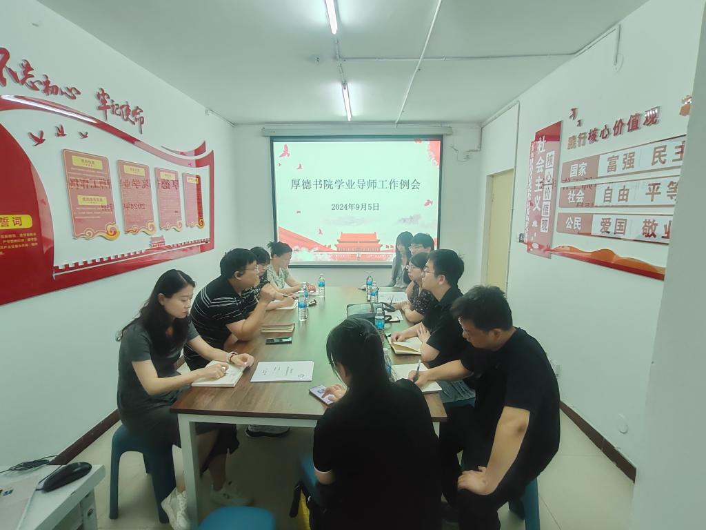 2024年9月5日上午,厚德书院开展学业导师期初工作例会,会议由院长董作霖主持,辅导员闫冰冰及全体学业导师参加。