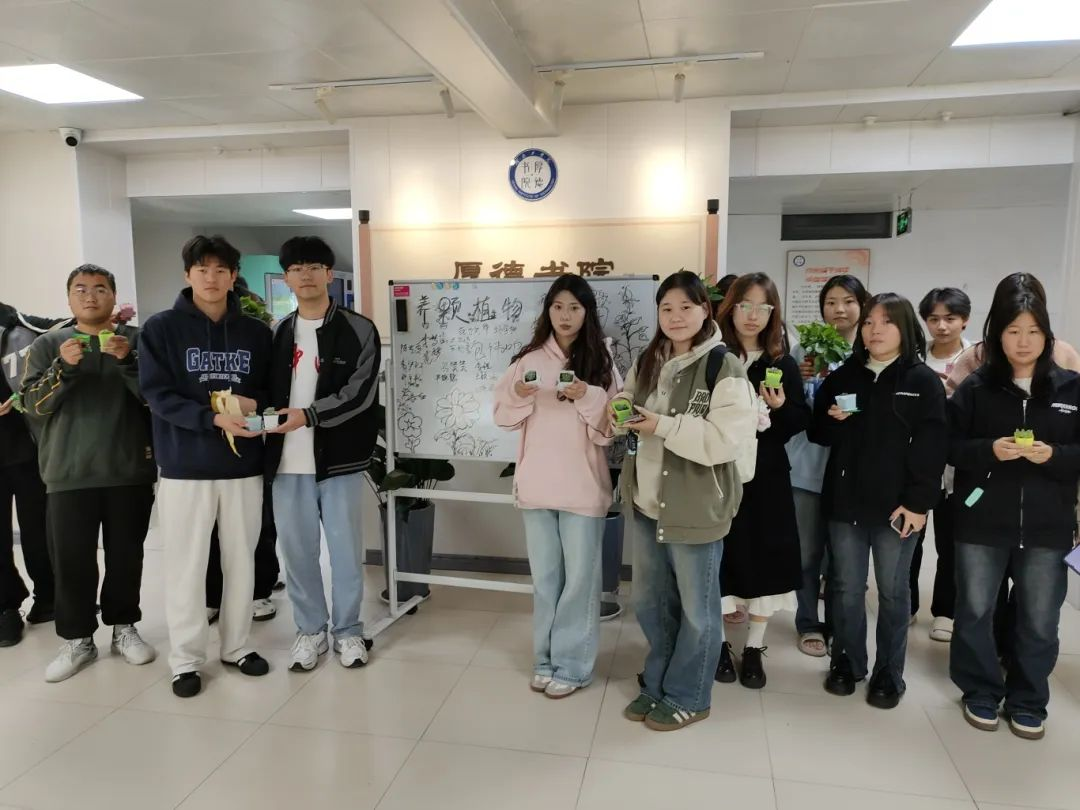 “且听风吟,静待花开”。绿色,向来是希望的象征,本次植物认养活动绝非一场简单的绿植领养行动,而是一次意义非凡的心灵之旅。它宛如一束阳光,穿透生活的阴霾,让同学们在面对未来时,即便偶遇风雨,也能心怀希望,保持健康向上的心态。此次活动,为厚德书院的校园文化注入了新的活力,也为绿色校园建设添上了浓墨重彩的一笔。相信在同学们的精心呵护下,这些绿色生命将为校园带来更多生机与美好。