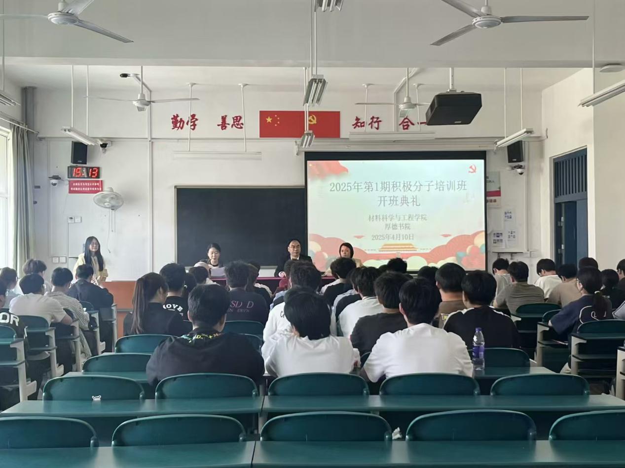 为深入学习贯彻习近平新时代中国特色社会主义思想,进一步加强入党积极分子的培养教育工作,提高入党积极分子的政治理论水平和党性修养,材料学院和厚德书院于2025年4月10日在教七229隆重举办了入党积极分子培训班开班仪式。厚德书院党总支副书记于善思、材料学院党委副书记周慧琳、厚德书院老师闫冰冰以及本期入党积极分子培训班全体学员参加了此次开班仪式,会议由闫冰冰主持。