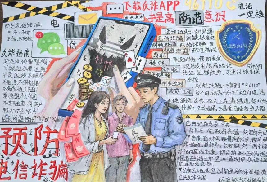 为进一步提升学生防诈意识和识骗能力,筑牢校园安全防线,营造“人人懂反诈、人人会防诈”的安全氛围,厚德书院于10月28日开展“防范电信诈骗”防诈骗创意手抄报活动。