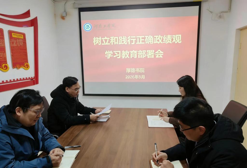 3 月 5 日下午,厚德书院在文九党团活动室召开树立和践行正确政绩观学习教育动员部署会。书院领导班子及全体教职工参加会议。